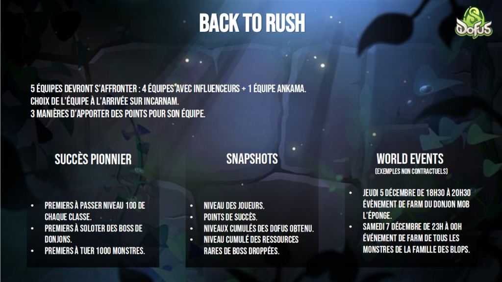 Avec l’arrivée des nouveaux serveurs DOFUS Unity, Ankama présente son tout nouvel événement le « Back To Rush ». Retrouvez le résumé de cet événement hors norme qui débute le 03 décembre prochain.